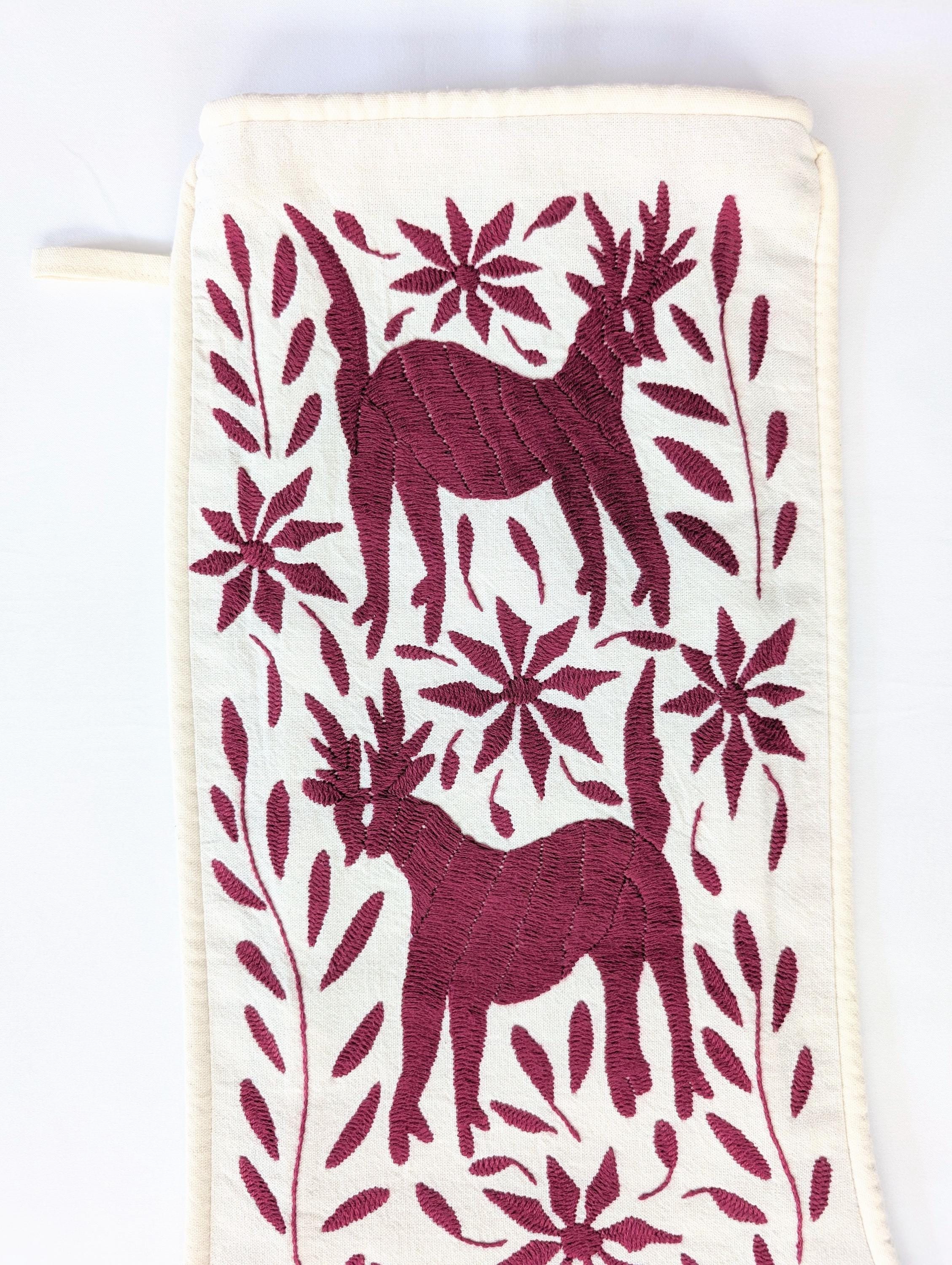 . FRONT: Hand embroidered with a traditional Mexican Otomí design: Deers and Poinsettia flowers.