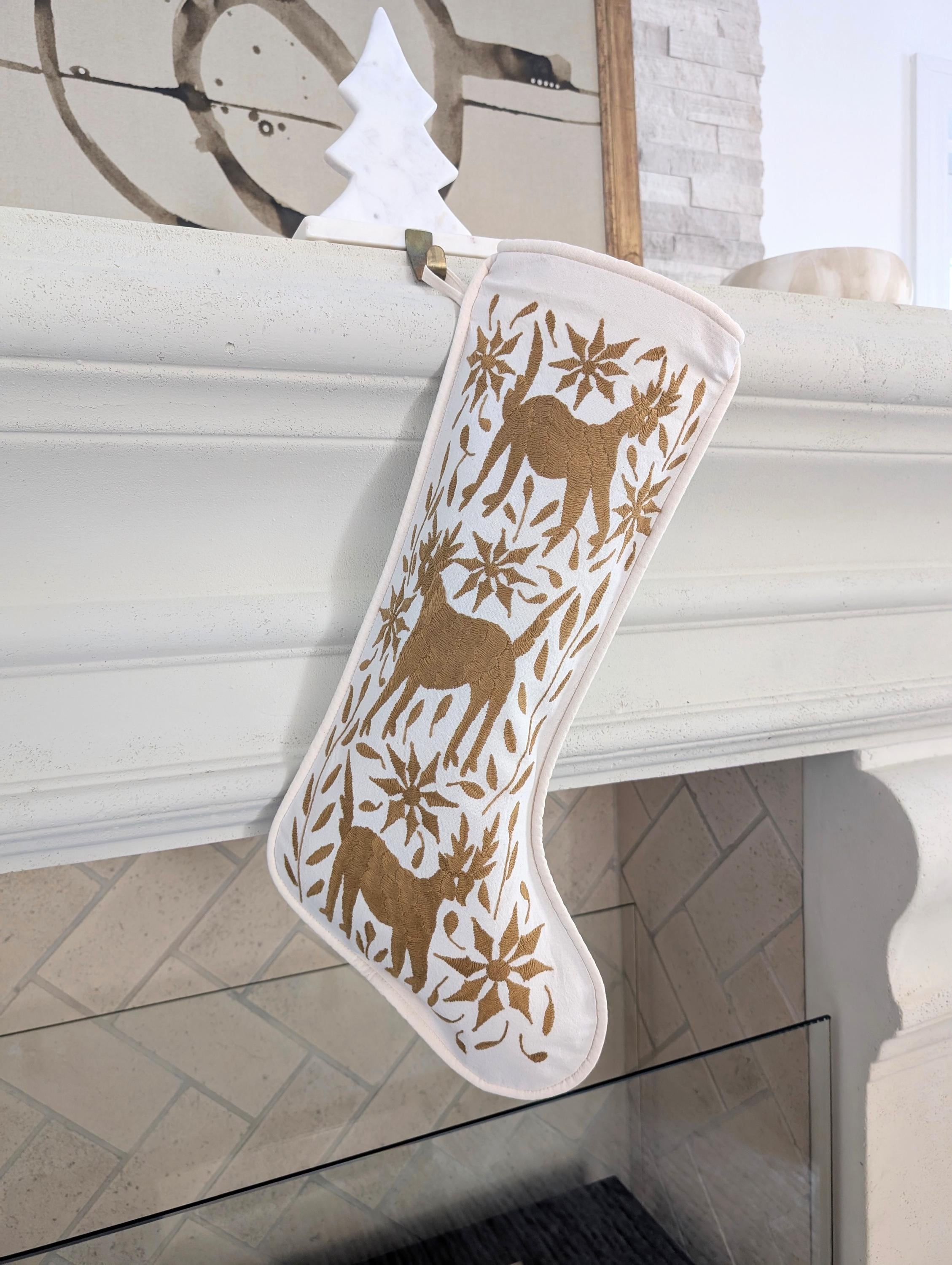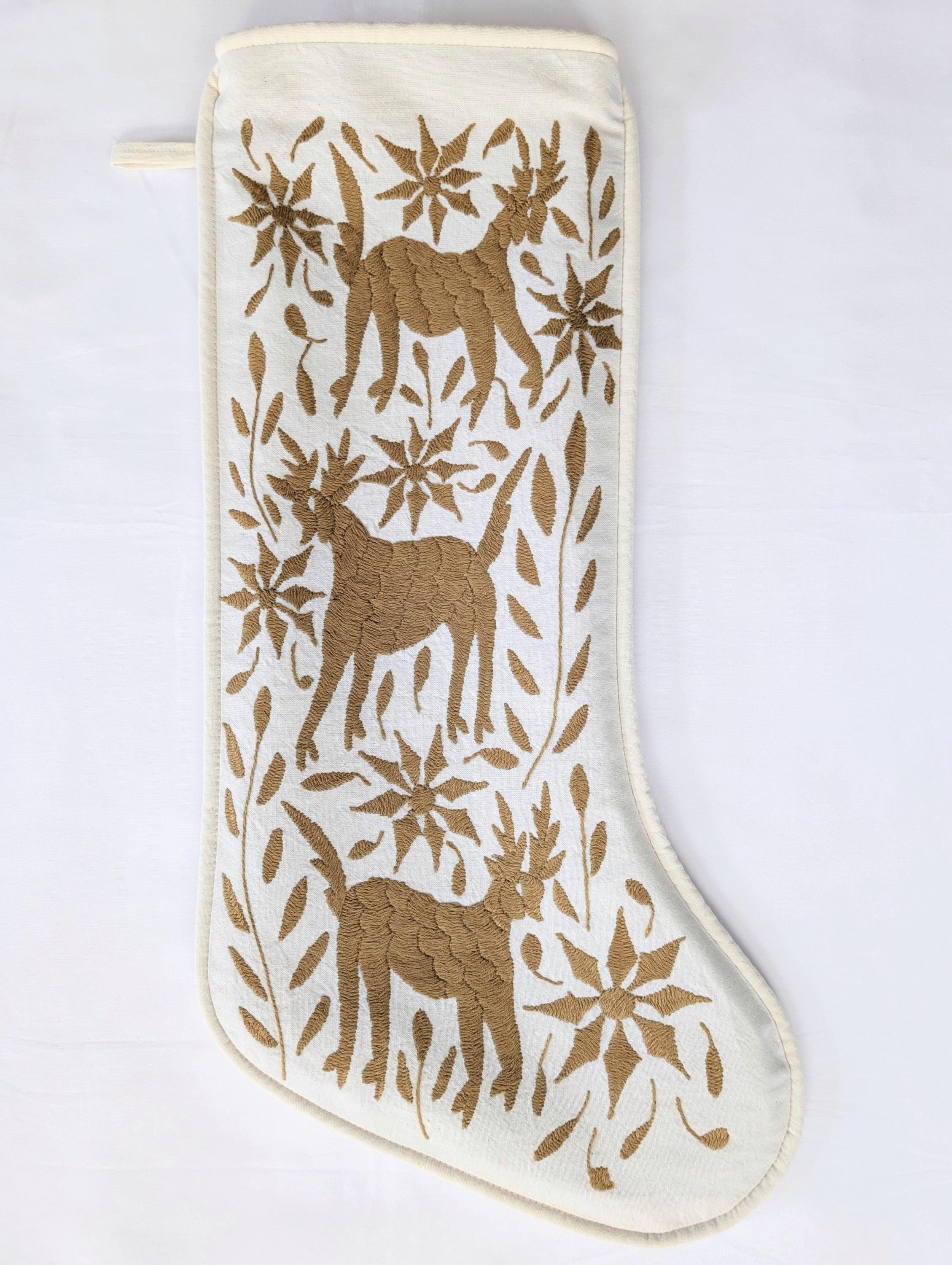 Otomi hand embroidered one-of-a-kind Christmas Stocking, crafted by skilled Otomi artisans in México.