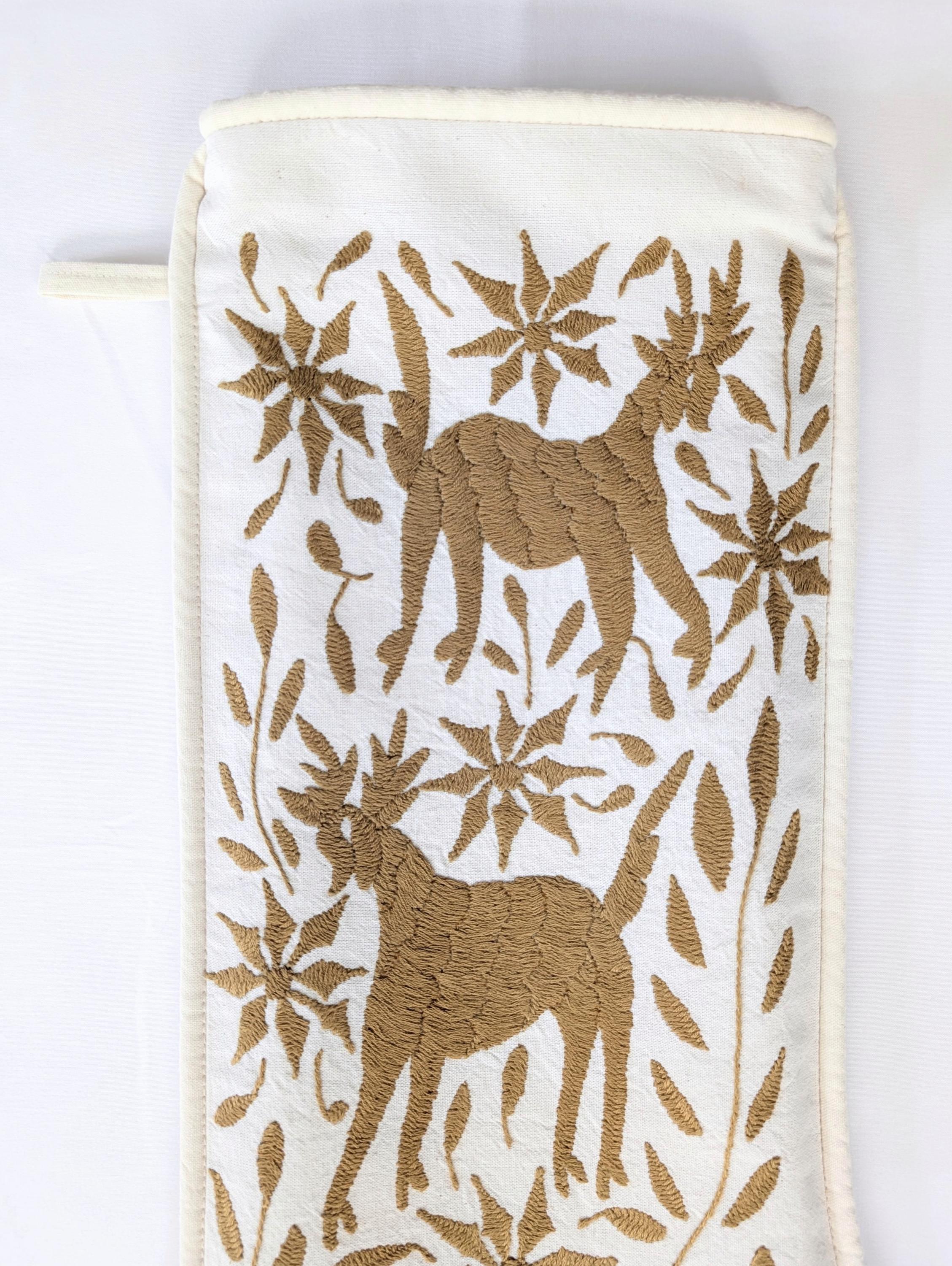 . FRONT: Embroidery features a traditional Mexican Otomi design: Deer and Poinsettias flowers.