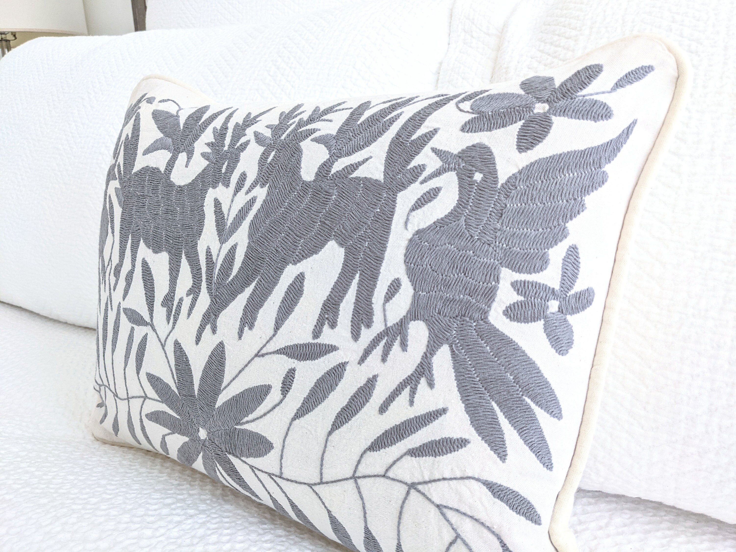 Otomi hand embroidered one-of-a-kind lumbar pillow cover, crafted by skilled Otomi artisans in México.
