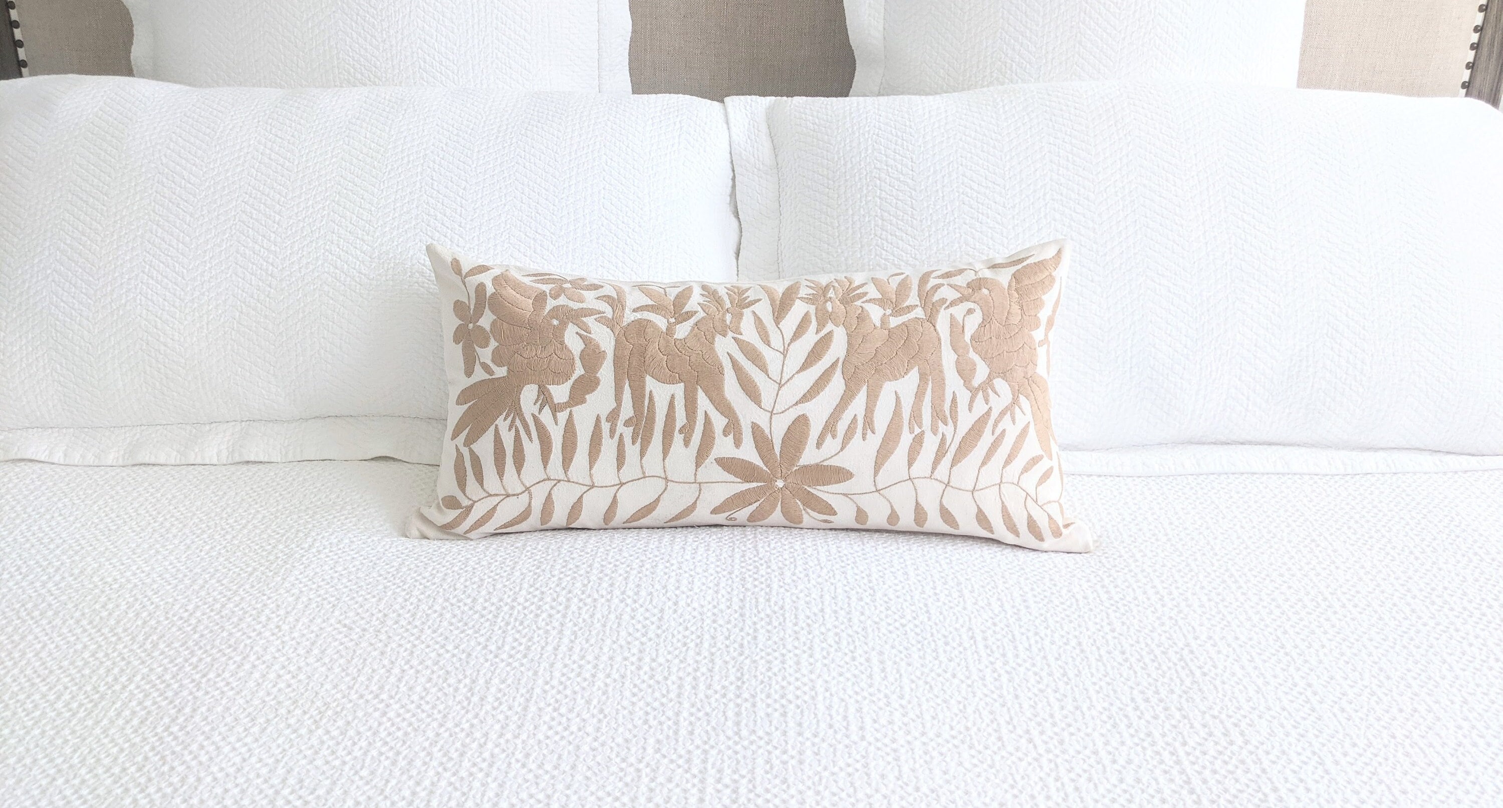 Otomi hand embroidered one-of-a-kind lumbar pillow cover, crafted by skilled Otomi artisans in México.