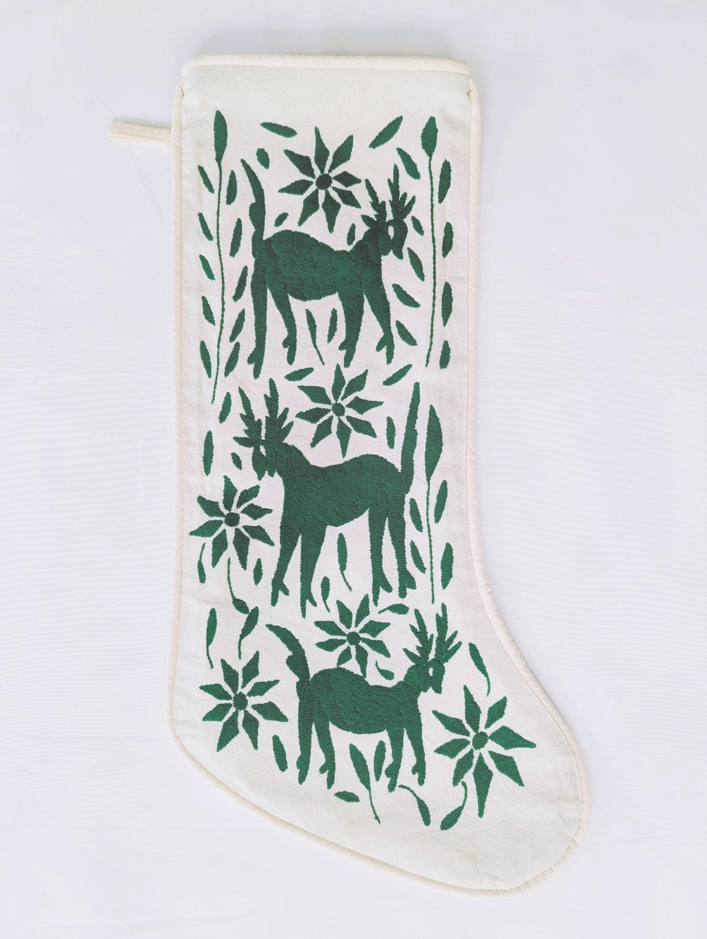 Otomi hand embroidered one-of-a-kind Christmas Stocking, crafted by skilled Otomi artisans in México.