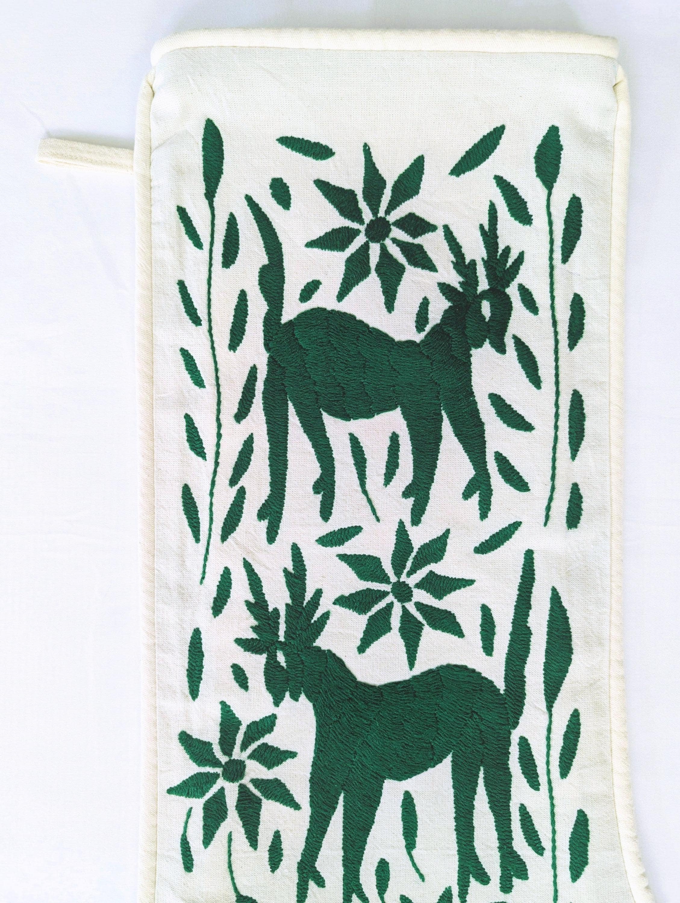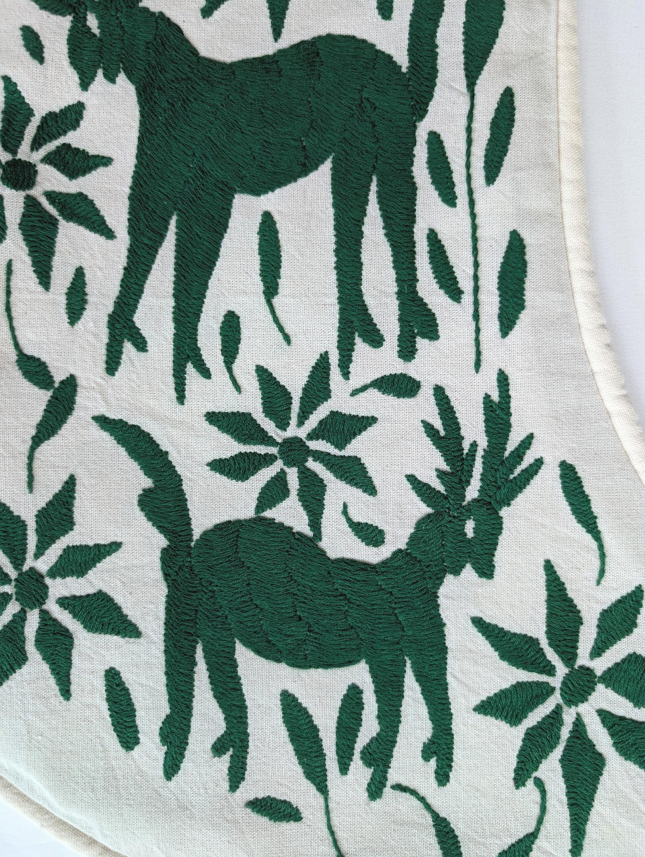 . FRONT: Embroidery features a traditional Mexican Otomi design: Deer and Poinsettias flowers.